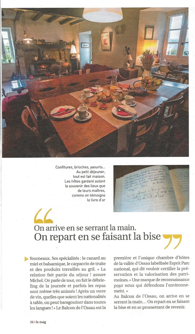 Extraits d'articles de pressecoup de coeur chambres d'hotes en vallée d'Ossau